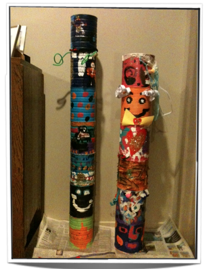 THE ROOM 5 TOTEM POLES ARE NEARLY READY TO BE DISPLAYED. HERE THEY ARE STANDING TALL. JUST THE FINAL TOUCHES TO BE ADDED AND THEN WE WILL SHARE THEM AT ASSEMBLY.